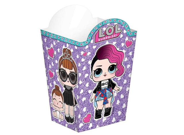 Surprise your guests with favours and treats packed into these colourful LOL Surprise popcorn boxes!