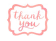 Made of plastic, these thank you stickers are white and feature a scroll shape, New Pink border and "Thank You" headline in elegant script.