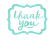 Made of plastic, these thank you stickers are white and feature a scroll shape, Robin's Egg Blue border and "Thank You" headline in elegant script.