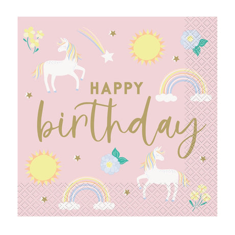 Dainty Unicorn Happy Birthday Lunch Napkins 16pk