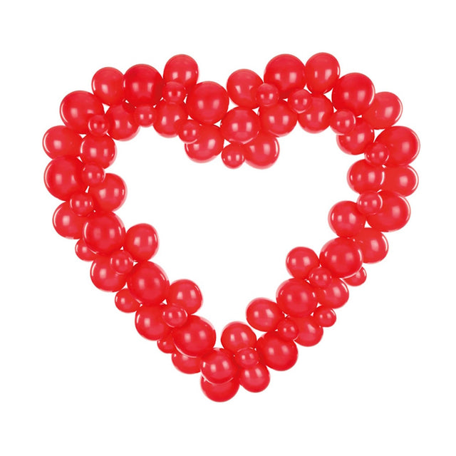 The set includes 68 Poppy Red latex balloons (in 3 sizes), 16 cardboard frame elements, and 20 double-sided glue stickers, along with clear instructions to help you assemble the heart with ease. Once assembled, the finished heart measures approximately 166 x 160 cm, making it a stunning focal point for any celebration.