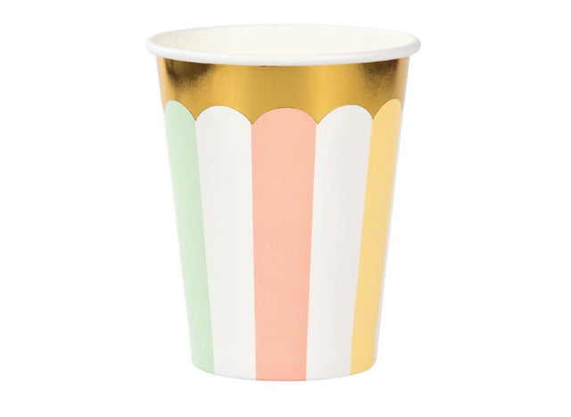 Featuring a rainbow of soft pastels paired with gold trim, these gorgeous party cups are perfect for so many occasions!