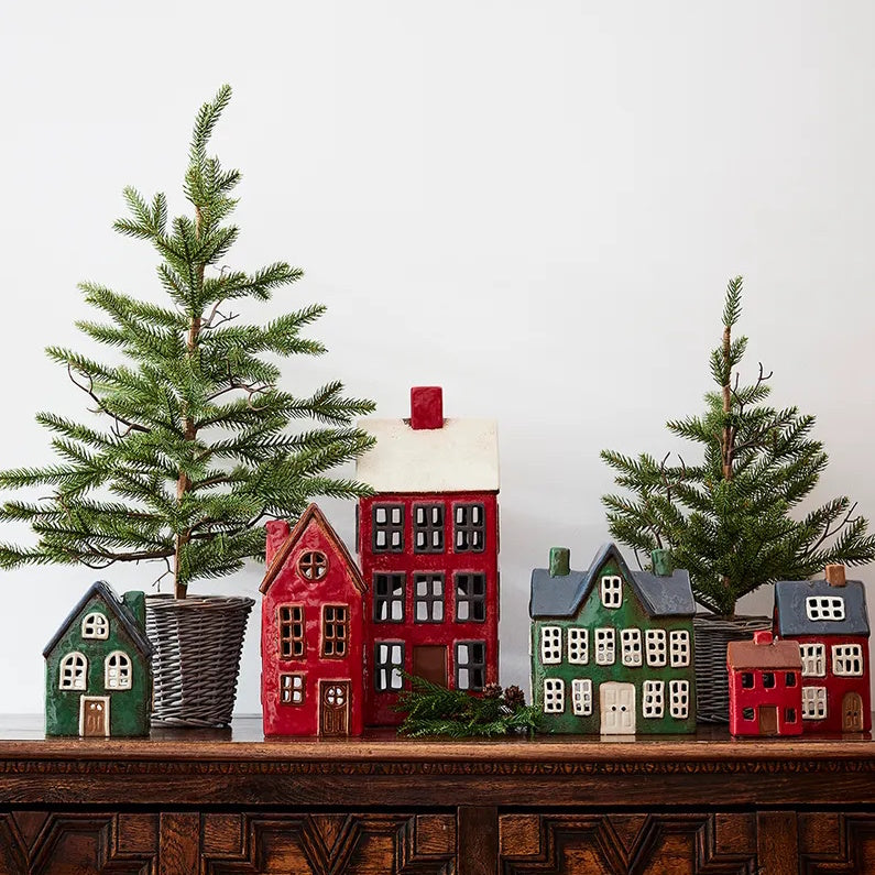 Celebrate the festive season with this small faux pine Christmas tree in willow basket, ideal small tree for decorating surfaces around the home.
