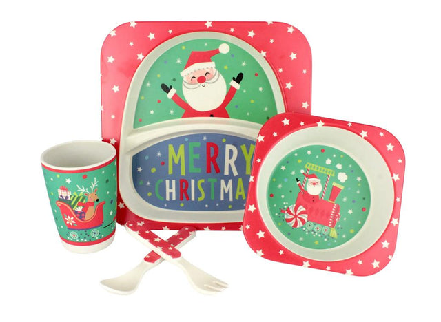 Your little one will love eating Christmas dinner from this cute and playful Christmas themed table set!