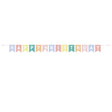 The pastel coloured pennant flags spell out "Happy Birthday", and feature shiny gold foil details.