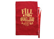 The bright red hessian sack features a metallic gold "Fill this sucker up" print on the front. Includes attached red satin ribbon for tieing.