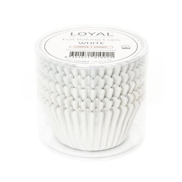 LOYAL Foil Baking Cup 100pk - White Large is backordered and will ship as soon as it is back in stock.