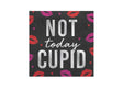The small black napkins feature a silver foil "Not Today Cupid" headline and a border of hearts and lip prints.