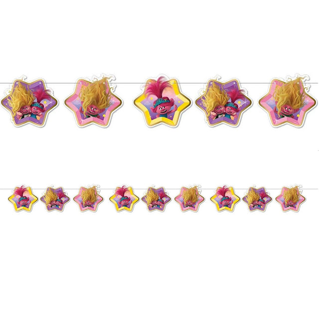 Give a superstar welcome to all your Trolls fans with this colourful star shaped garland!