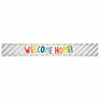 Welcome home a world traveller, or new baby with this colourful "Welcome Home" banner featuring a sparkly holographic finish.