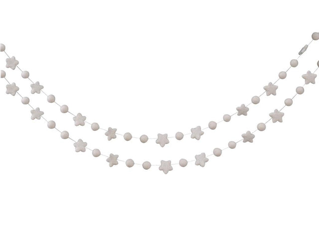 White Christmas Felt Beads & Stars Garland is backordered and will ship as soon as it is back in stock.