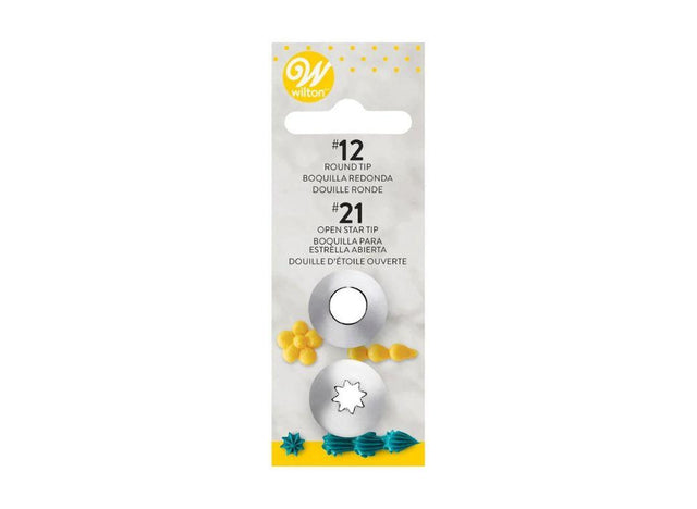 Two classic tips in one handy set! Get round tip 12 and open star tip 21 and get decorating.